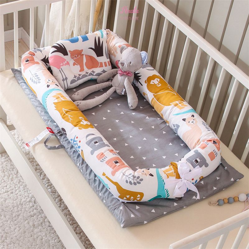 Viền nệm cao, ngăn bé lăn ra ngoài; dễ tháo rời để giặt giũ hoặc mang đi xa.