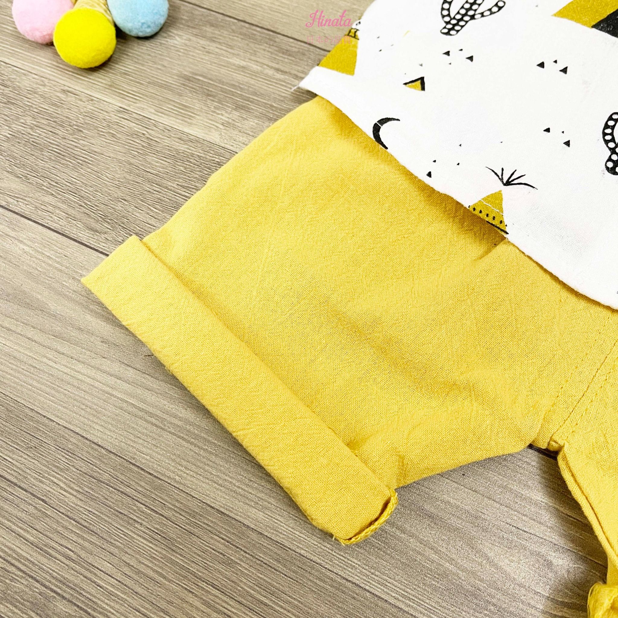 Adorable patterns: Cute bear and pine tree prints in bright colors (yellow, white) suitable for any occasion.